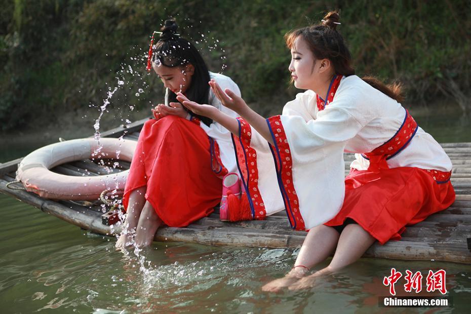 3月29日,一場重現(xiàn)中國古代春秋時期上巳節(jié)“曲水流觴、臨水浮卵、水上浮棗”風俗的活動在江蘇常州淹城春秋樂園內上演。據(jù)記載,在上述三種水上活動中,以臨水浮卵最為古老,它是將煮熟的雞蛋放在河水中,任其浮移,誰拾到誰食之。水上浮棗和曲水流觴則是由臨水浮卵演變來的。