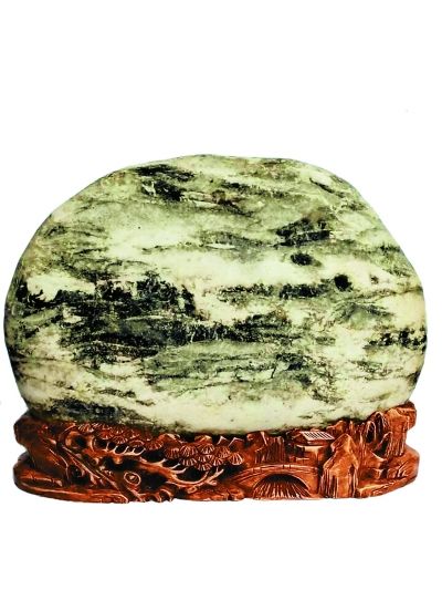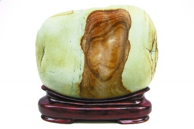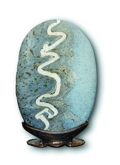 金沙江卵石的種類繁多,主要有芙蓉石、墨畫石、油畫石、龜紋石、螺鈿石、松花石、丹彩石、牧羊石、金剛石、燙畫石、彩蠟石、金沙彩等。這些石頭到底有多好,水富縣的石友們總結(jié)出十大美——天然美、色彩美、線條美、石質(zhì)美、形象美、裝飾美、朦朧美、含蓄美、空靈美、意境美。如果沒有江水長年累月的沖刷和搬運,也就不會形成這么多美麗的石頭。水富縣奇石辦多次組織當(dāng)?shù)氐氖虆⒓尤珖?,幾年來,捧回特等獎一枚,金?85枚,銀獎420枚,優(yōu)秀獎600枚。好像是在夸自己,曹會長說得有些臉紅,用手拍打起石頭來。在一旁的老伴兒說,老曹一高興就愛拍石頭,說石頭能聽懂他的話。這倒讓我想起著名美學(xué)家王朝聞贊美奇石的一首詩:“石居人外,人在石中。相擊相和,創(chuàng)造對方?!?/p>