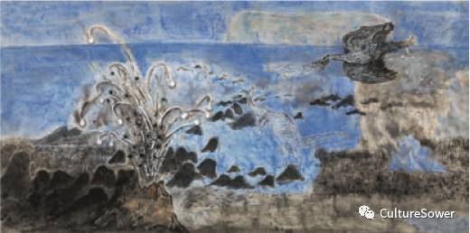 每年一度的“問道水墨:當代中國畫名家作品展”,已連續(xù)舉辦過6次,先后展于西安、合肥、成都、桂林、重慶、無錫,本次屬第七回,輪到上海作東。參展畫家黃越等十一人,來自全國各地,是中國美院國畫系1990年研修班的經(jīng)歷和共同的理想信念,把他們凝聚到一起。中國美院是現(xiàn)代中國畫的大本營,那里有林風眠、潘天壽、黃賓虹的傳統(tǒng),一直引領(lǐng)著現(xiàn)代中國畫的探索。新一代教師繼承前輩衣缽,努力傳承創(chuàng)新,繼續(xù)推進中國畫發(fā)展。在這樣的環(huán)境下,十一位學(xué)員,也潛心探索水墨之謎,二十年之后,或在學(xué)校,或在美術(shù)機構(gòu),或作為獨立畫家,開始嶄露頭角,作為對社會的回報,2011年在西安首次推出“問道水墨:當代中國畫名家作品展”。到今年在上海舉辦第7回展覽之際,他們多已功成名就,自成一格,成為享譽一方的名人。