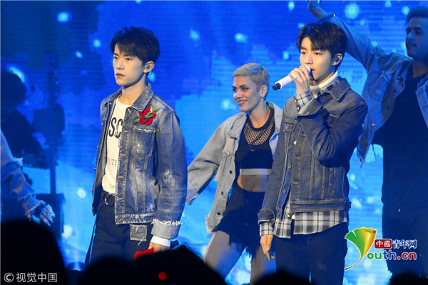 ??? 北京,12月12日晚,王俊凱、易烊千璽現(xiàn)身某活動(dòng),兩人身穿牛仔外套獻(xiàn)唱嗨翻全場(chǎng),又換上紅色衛(wèi)衣舉廣告宣傳標(biāo)語