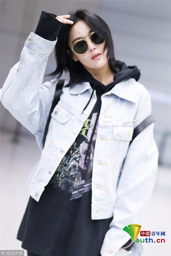 2017年12月13日,上海,張馨予現(xiàn)身機場,穿連帽衣顯清爽,剪短發(fā)架黑超形似王菲,歪頭撩發(fā)又帥又酷。