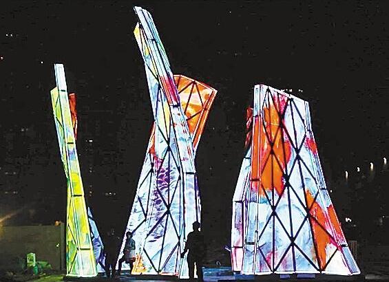 ▲盛姍姍為深圳創(chuàng)作的《綻放》夜景。 深圳商報(bào)記者 劉娥 攝
