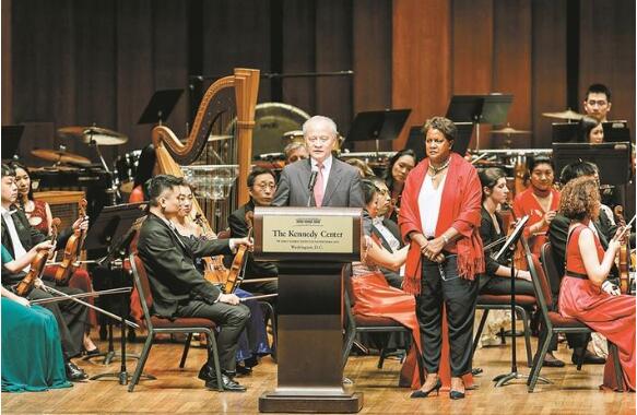 美國當?shù)貢r間2月15日,在首都華盛頓肯尼迪藝術(shù)中心,深圳交響樂團首席客席指揮譚盾執(zhí)棒,率小提琴家朱丹、大提琴家聶佳鵬、鋼琴家吳聿敏、嗩吶演奏家劉雯雯以及深交多位演奏家,為美國觀眾送上中國新春音樂會。中西合璧的美妙音樂,世界語言講述的中國故事,不僅獲得中國駐美大使崔天凱點贊,也令當?shù)赜^眾久久沉醉。