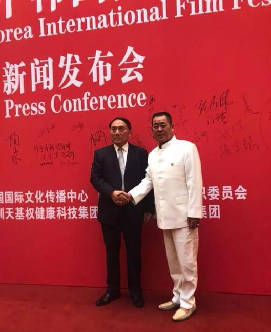 天基權(quán)董事長/總裁釋延豹與中韓國際電影節(jié)執(zhí)行委員長兼評審委員長張國立合影