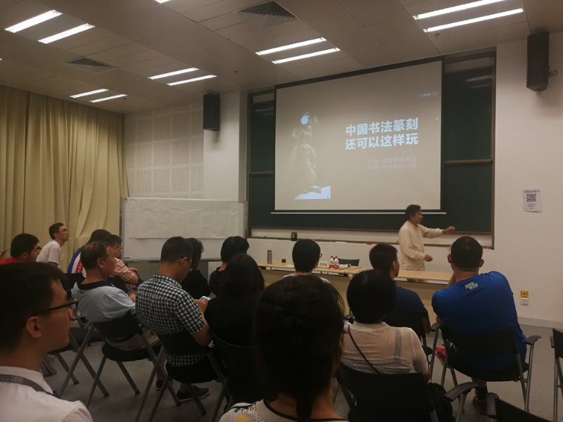 在2個小時的講座中,鐘國康妙語連珠,用生動幽默的語言將博大精深的書法篆刻文化表現(xiàn)得淋漓盡致,講座現(xiàn)場掌聲連連。鐘國康認(rèn)為,書法篆刻之術(shù),只有筆性、墨性、石性、紙性、心性,全方位嚴(yán)謹(jǐn),筆力勁駿,心手相應(yīng),技藝熟練,才能做到庖丁解牛,勢如破竹,可進(jìn)可退,正可謂“惟習(xí)之至熟,自可心手相應(yīng)”。他還現(xiàn)場潑墨揮毫,演示篆書的寫法,詳細(xì)講解并現(xiàn)場演示了篆刻的方法,重點分享自己在單刀法和雙刀法上的獨特見解。單刀法要“有多狠刻多狠,有多猛刻多猛,有多深刻多深,有多長線條刻多長線條”,而雙刀法即在“單刀之回馬槍重刻一遍相反之單刀法”。一些幸運的書法、篆刻愛好者還通過搶答的方式,獲贈書法篆刻作品。(通訊員 孫善文)