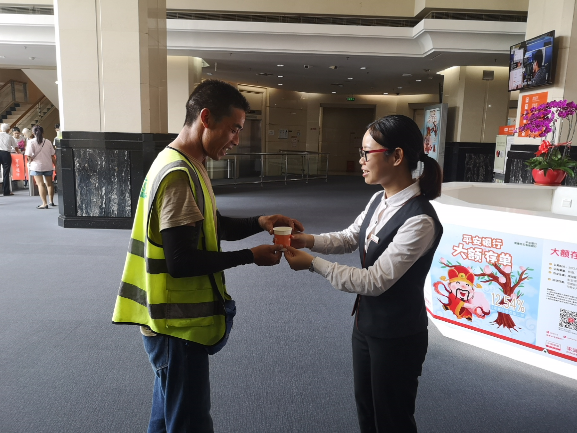 炎炎夏日,清潔工、建筑工人、快遞員等戶外工作者,頭頂著烈日、在滾滾熱浪中辛苦工作,守護(hù)著城市的安寧與美麗。為了關(guān)愛這些戶外工作者,傳遞社會(huì)正能量,踐行社會(huì)責(zé)任,平安銀行在全國(guó)網(wǎng)點(diǎn)發(fā)起了“夏日送清涼?平安更懂你”公益行動(dòng)。該行深圳分行也在深圳地區(qū)100多家網(wǎng)點(diǎn)全面開展了此項(xiàng)公益活動(dòng),在炎熱的夏日為戶外工作者送去一份關(guān)愛。