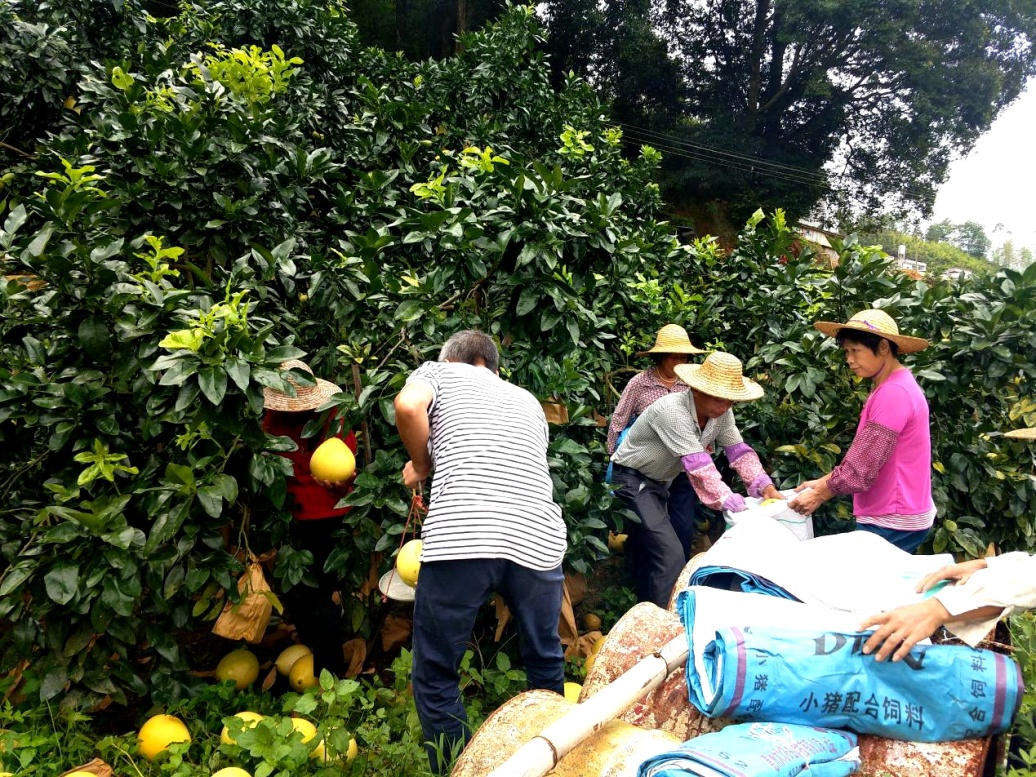 選對路子進展加快,脫貧攻堅喜獲成效。2018年金秋時節(jié),陂湖村的蜜柚喜獲豐收。走進陂湖村的田野,在碧綠的柚樹林中,沉甸甸、黃燦燦的蜜柚掛滿了田間山頭。孰料九月蜜柚采摘時,廣東遭遇五十年難遇的強臺風“山竹”,為保證蜜柚中秋節(jié)前上市的計劃不受影響,分行扶貧干部動員全村勞力,連夜搶摘,奮戰(zhàn)12小時完成了采摘、送庫工作。本來生活的項目經(jīng)理在臺風期間睡在庫房,在全市停工停業(yè)的情況下,組織包裝、分類、檢疫工作,確保了蜜柚上市。2018年中秋佳節(jié),第一季“愛心蜜柚”順利上市,分行員工訂購踴躍,2萬余斤蜜柚很快銷售一空,村民獲利7萬余元。