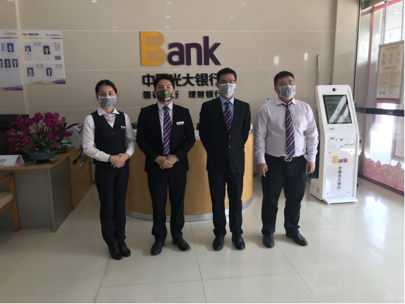 光大銀行深圳寶安福永支行值班同事堅守崗位,配合分行調(diào)配工作,柜臺同事鄒俊娟、盧明科自春節(jié)大年初二后即返深準備值班工作,參與初三初四值班工作,客戶經(jīng)理助理方燦偉承擔大堂值班工作。