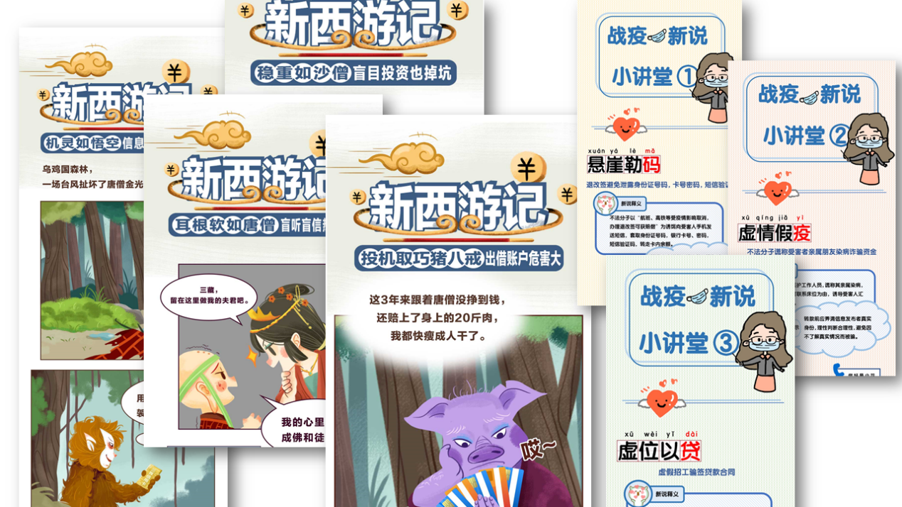 針對疫情期間頻繁出現(xiàn)電信網(wǎng)絡詐騙的情況,招商銀行深圳分行迅速反應,以原創(chuàng)漫畫、小視頻、線上直播及在線互動問答等新穎形式開展抗疫防騙線上宣教,對不同類型的詐騙套路進行揭示和解析,如虛假售賣醫(yī)用口罩、以慈善募捐名義騙取捐款等,及時對消費者進行風險提示。除此之外,還以普及金融消費者享有的八項法定權利、倡導金融消費者依法理性維權、宣傳個人征信業(yè)務網(wǎng)上辦理、識別非法金融廣告等知識為內容,創(chuàng)作貼合時事、實用有趣、形式多樣的宣教作品,有效提升了消費者在疫情特殊時期的金融素養(yǎng)。