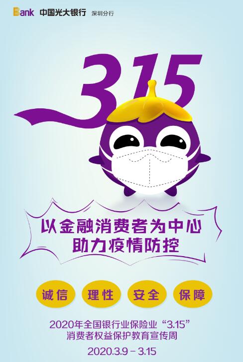 深圳新聞網(wǎng)3月13日訊(記者 朱琳 通訊員 樓蓉 李昕)近日,2020年“3·15消費(fèi)者權(quán)益保護(hù)教育宣傳周”正式啟動(dòng)。與往年不同,今年一場(chǎng)突如其來(lái)的新冠肺炎疫情席卷全國(guó)。面對(duì)疫情危機(jī),中國(guó)光大銀行深圳分行積極行動(dòng),在滿足特殊時(shí)期客戶服務(wù)需求的同時(shí),以“以金融消費(fèi)者為中心,助力疫情防控”為主題,通過(guò)做好線上金融知識(shí)宣傳,創(chuàng)新金融服務(wù)模式,打造安全營(yíng)業(yè)環(huán)境,提高客戶滿意度,推動(dòng)消費(fèi)者權(quán)益保護(hù)工作。光大銀行深圳分行以優(yōu)質(zhì)、高效、貼心的金融服務(wù),為防控阻擊戰(zhàn)、發(fā)展陣地戰(zhàn)“兩個(gè)戰(zhàn)場(chǎng)”貢獻(xiàn)光大力量。