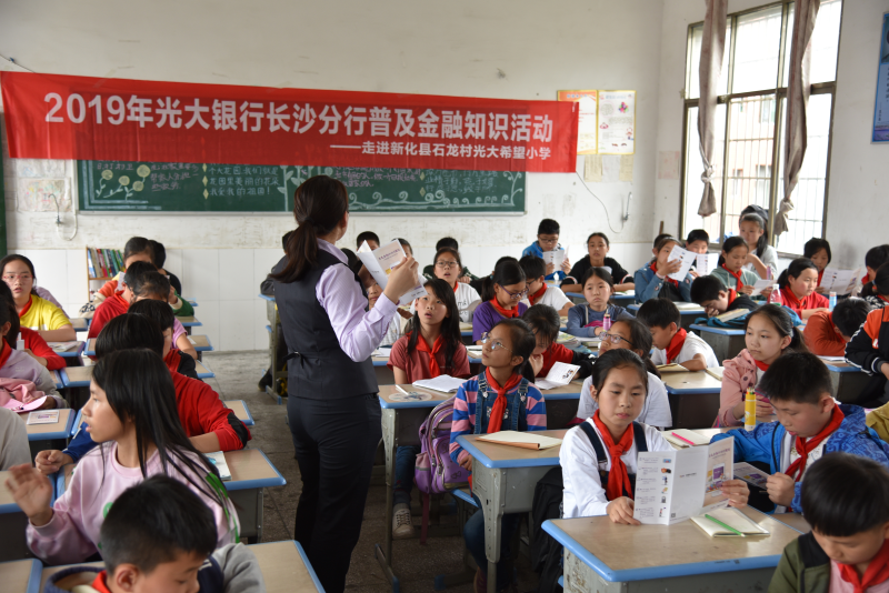 此外,近年來長沙分行還積極開展“小小銀行家”送金融知識與關(guān)懷慰問進山區(qū)活動,定期走進新化縣石龍村光大希望小學、新田縣苦志育才學校,為師生們普及金融知識,讓金融知識和服務(wù)在貧困山區(qū)依然能開花結(jié)果。