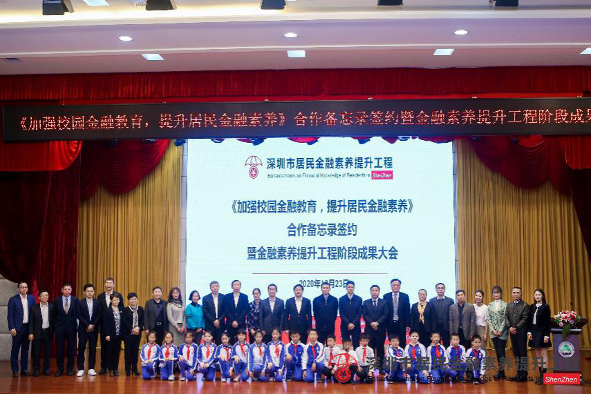 深圳新聞網(wǎng)·見(jiàn)圳客戶端2020年12月28日訊 近日,由中國(guó)人民銀行深圳市中心支行、深圳銀保監(jiān)局、深圳證監(jiān)局、深圳市地方金融監(jiān)督管理局、深圳證券交易所、深圳市教育局、福田區(qū)人民政府主辦,深圳市民政局協(xié)辦的《加強(qiáng)校園金融教育,提升居民金融素養(yǎng)》合作備忘錄簽約暨金融素養(yǎng)提升工程階段成果大會(huì)在福田實(shí)驗(yàn)僑香學(xué)校舉行。深圳市政府、相關(guān)機(jī)構(gòu)領(lǐng)導(dǎo),市各金融機(jī)構(gòu)代表、市區(qū)中小學(xué)校領(lǐng)導(dǎo)、街道社區(qū)負(fù)責(zé)人以及僑香學(xué)校的師生們等逾200人出席了大會(huì)。