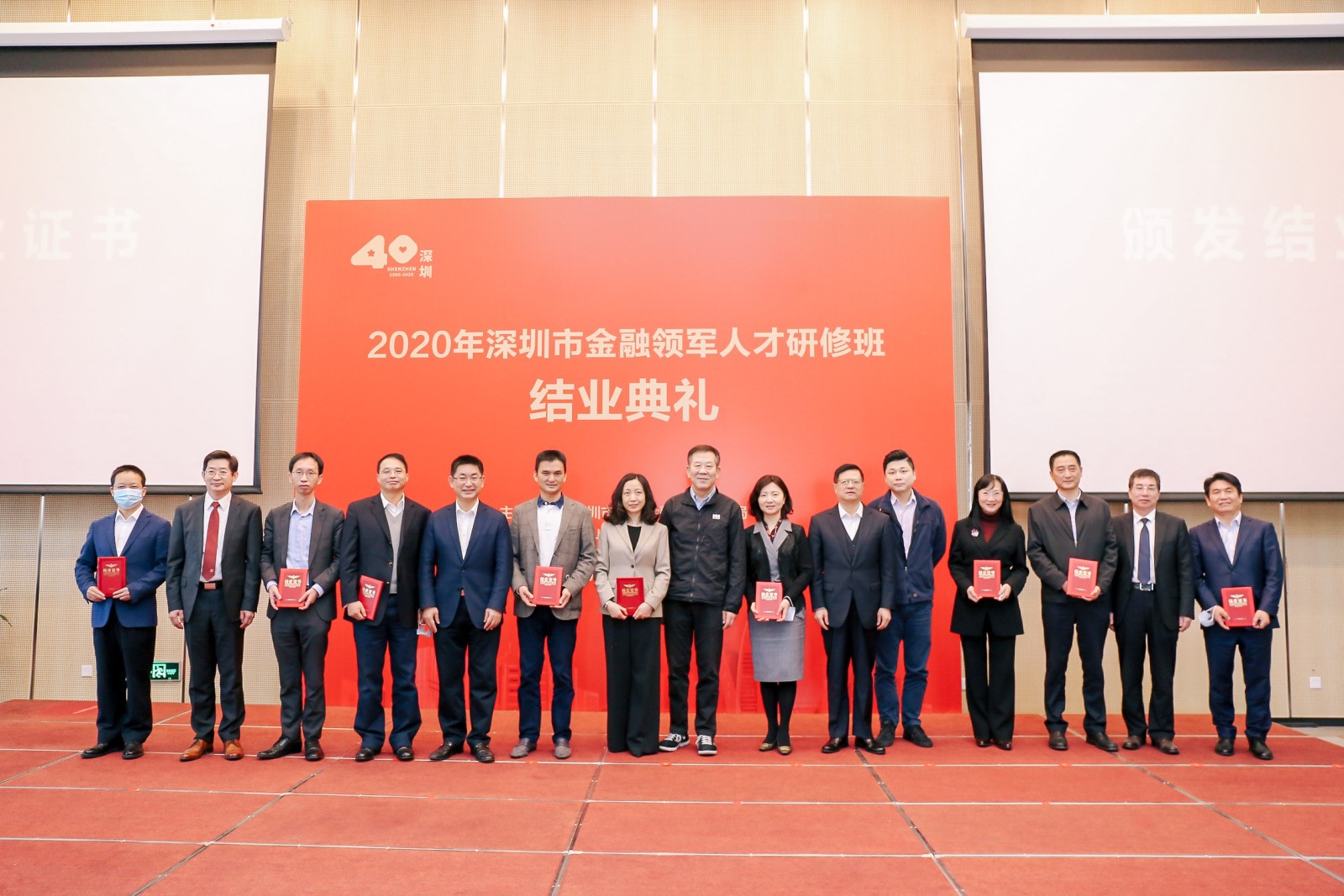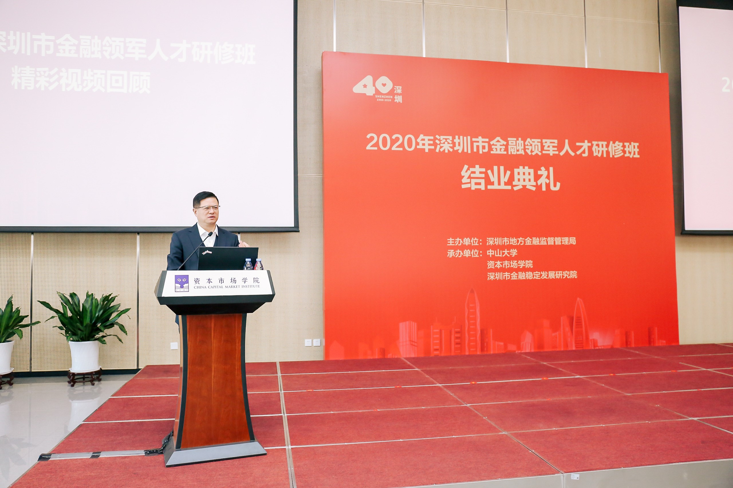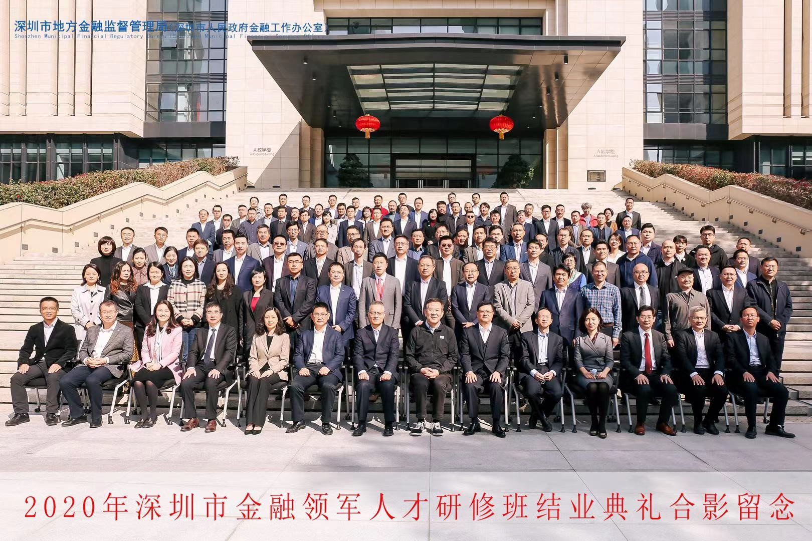 1月30日上午,2020年深圳金融領(lǐng)軍人才研修班結(jié)業(yè)典禮在資本市場(chǎng)學(xué)院隆重舉辦。本期研修班由深圳市地方金融監(jiān)督管理局主辦,中山大學(xué)、資本市場(chǎng)學(xué)院、深圳市金融穩(wěn)定發(fā)展研究院共同承辦。市地方金融監(jiān)管局黨組書(shū)記劉平生主持結(jié)業(yè)典禮并致辭,局長(zhǎng)何杰作總結(jié)講話。資本市場(chǎng)學(xué)院副理事長(zhǎng)、深圳市原副市長(zhǎng)唐杰教授,資本市場(chǎng)學(xué)院黨委書(shū)記陳自強(qiáng)、院長(zhǎng)金立揚(yáng)、副院長(zhǎng)張韶輝,深圳銀保監(jiān)局副局長(zhǎng)陳飛鴻、深圳證券交易所紀(jì)委書(shū)記邢力紅,市地方金融監(jiān)督管理局副巡視員林居正,中山大學(xué)嶺南學(xué)院院長(zhǎng)陸軍教授,以及市委組織部、人民銀行深圳市中心支行、深圳證監(jiān)局有關(guān)領(lǐng)導(dǎo)應(yīng)邀出席,本期研修班近110名學(xué)員參加活動(dòng)。