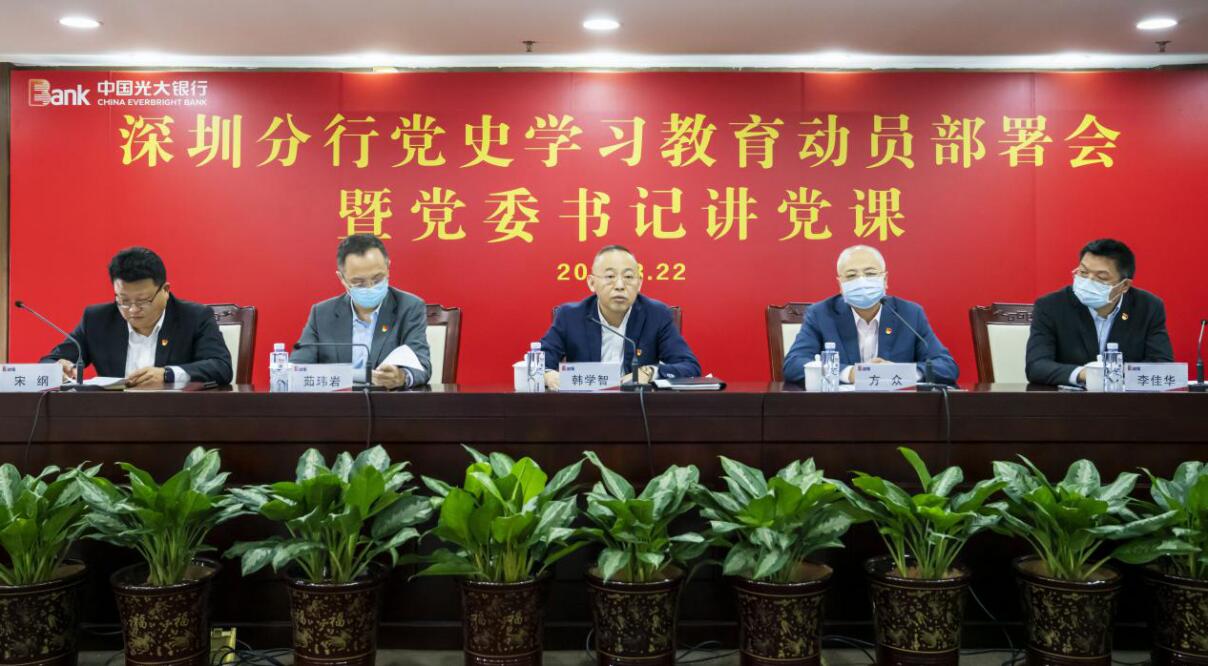 深圳新聞網(wǎng)·見圳客戶端2021年3月23日訊 知其史方能激其志,激其志方能盡其責(zé)。昨日,光大銀行深圳分行舉行黨史學(xué)習(xí)動(dòng)員部署會(huì)暨黨委書記講黨課,學(xué)習(xí)貫徹習(xí)近平總書記在黨史學(xué)習(xí)教育動(dòng)員大會(huì)上的重要講話精神和李曉鵬董事長(zhǎng)集團(tuán)黨史學(xué)習(xí)教育動(dòng)員部署會(huì)講話精神。分行黨委書記、行長(zhǎng)韓學(xué)智全面動(dòng)員部署黨史學(xué)習(xí)教育工作,并講《學(xué)習(xí)中共黨史 牢記使命擔(dān)當(dāng)—中國(guó)共產(chǎn)黨從“一大”到“三大”的歷史沿革》專題黨課。分行黨委委員、紀(jì)委書記方眾主持會(huì)議并對(duì)《深圳分行黨委黨史學(xué)習(xí)教育工作方案》進(jìn)行了宣講和具體工作部署,分行領(lǐng)導(dǎo)班子成員和全體中層干部共160多人參加會(huì)議。