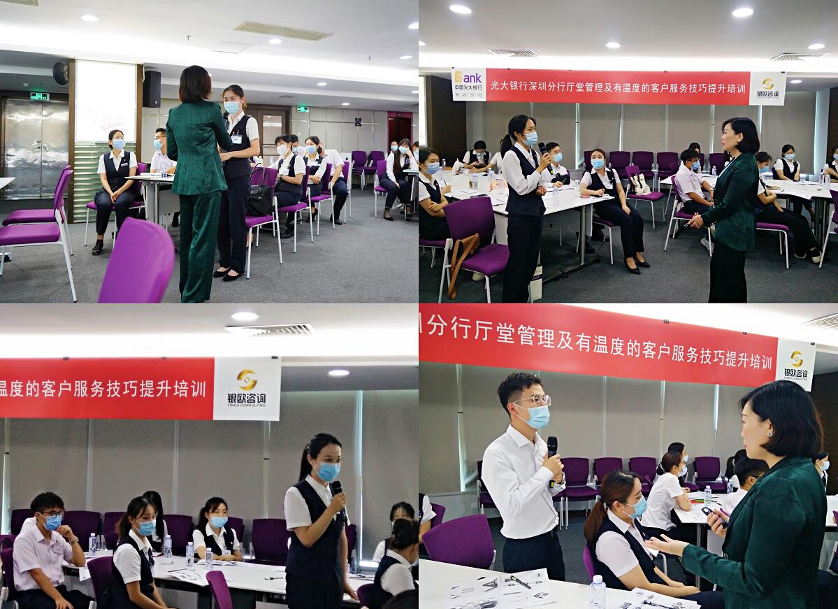 據(jù)了解,深圳分行黨委高度重視此次培訓活動,在以分行行長韓學智為班長的黨委班子的領導下,由茹瑋巖副行長牽頭主抓、分行陽光服務(消費者權益保護)辦公室精心組織。培訓通過理論教學、情景演練、互動分享等形式,將大堂經(jīng)理的崗位職責、自我定位、廳堂管理,結合生動形象的案例進行深度分析。參與培訓人員紛紛表示,學習有助于知識更新,加深了對廳堂服務的理解。