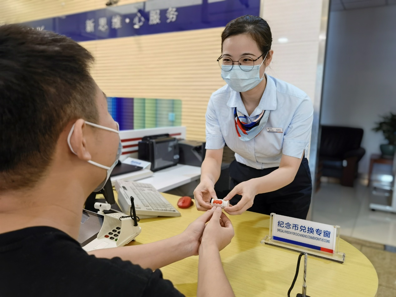 對于本次建黨百年紀念幣兌換活動,該行工作人員表示參與其中倍感光榮和自豪?!拔覀兌▽堰@份信任和責任化為我們工作的動力,加強對社會公眾服務,提升客戶滿意度,不忘初心,砥礪前行,讓金融為美好生活創(chuàng)造更多價值”。