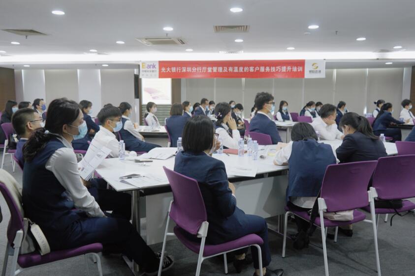 深圳新聞網(wǎng)2021年11月13日訊(記者 朱琳 通訊員 沈婷)為落實新形勢下的服務工作要求,推進更優(yōu)客戶體驗的服務規(guī)范,履行社會責任,樹立光大品牌。11月12日,光大銀行深圳分行舉辦了“廳堂管理及有溫度的客戶服務技巧提升”第三期專題培訓。深圳分行總監(jiān)、陽光服務(消費者權益保護)辦公室負責人以及各支行大堂經(jīng)理、大堂助理共50余人參加了培訓。