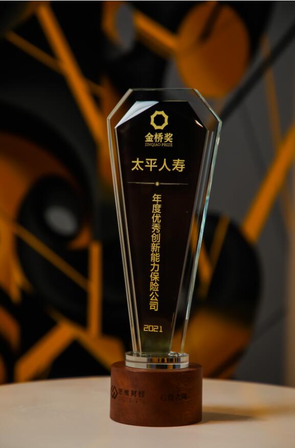 太平人壽獲評(píng)2021金橋獎(jiǎng)“年度優(yōu)秀創(chuàng)新能力保險(xiǎn)公司”