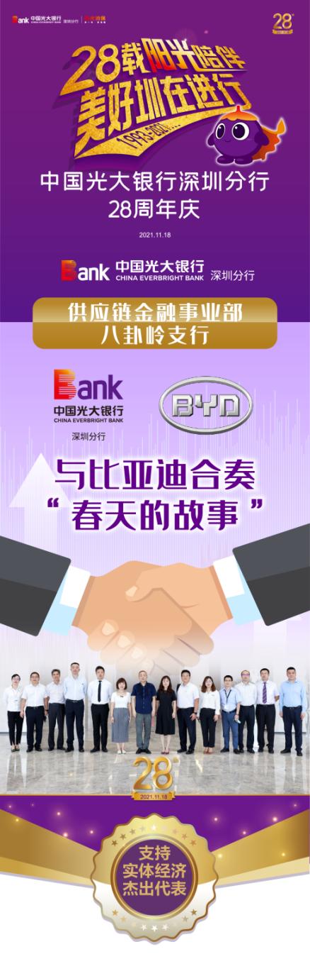 作為光大銀行深圳分行首批成立的支行之一,八卦嶺支行是服務(wù)比亞迪的“第一線”。一個個服務(wù)實(shí)體經(jīng)濟(jì)、相伴成長的動人故事,成為八卦嶺支行代代相傳的寶貴財(cái)富。在深圳分行28周年“十大最美光陰故事”評選中,供應(yīng)鏈金融事業(yè)部與八卦嶺支行榮獲支持實(shí)體經(jīng)濟(jì)杰出代表。