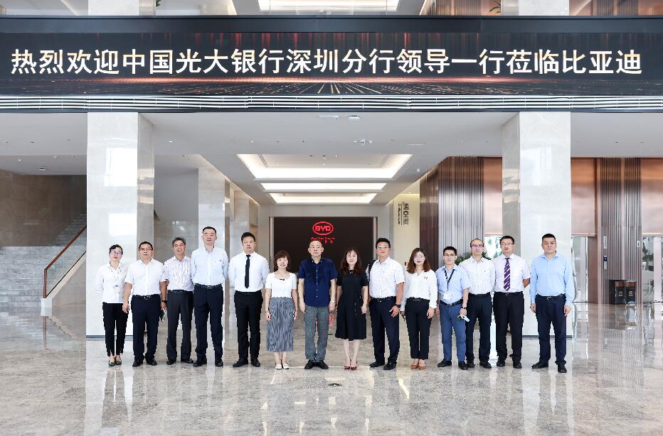 2018年12月11日,光大集團(tuán)與比亞迪在中國光大中心簽署戰(zhàn)略合作協(xié)議。次年9月,李曉鵬董事長前往深圳調(diào)研比亞迪,與比亞迪董事長兼總裁王傳福進(jìn)行工作會談,雙方合作更為密切。2021年6月9日,光大銀行深圳分行行長韓學(xué)智率隊(duì)拜訪比亞迪集團(tuán),雙方就踐行國家“創(chuàng)新、協(xié)調(diào)、綠色、開放、共享”發(fā)展理念,進(jìn)一步落實(shí)中國光大集團(tuán)與比亞迪集團(tuán)重要戰(zhàn)略合作協(xié)議,深化綜合金融服務(wù),加強(qiáng)協(xié)同聯(lián)動發(fā)展等方面進(jìn)行座談,為下一步光大銀行與比亞迪集團(tuán)的合作打下堅(jiān)實(shí)的基礎(chǔ)。