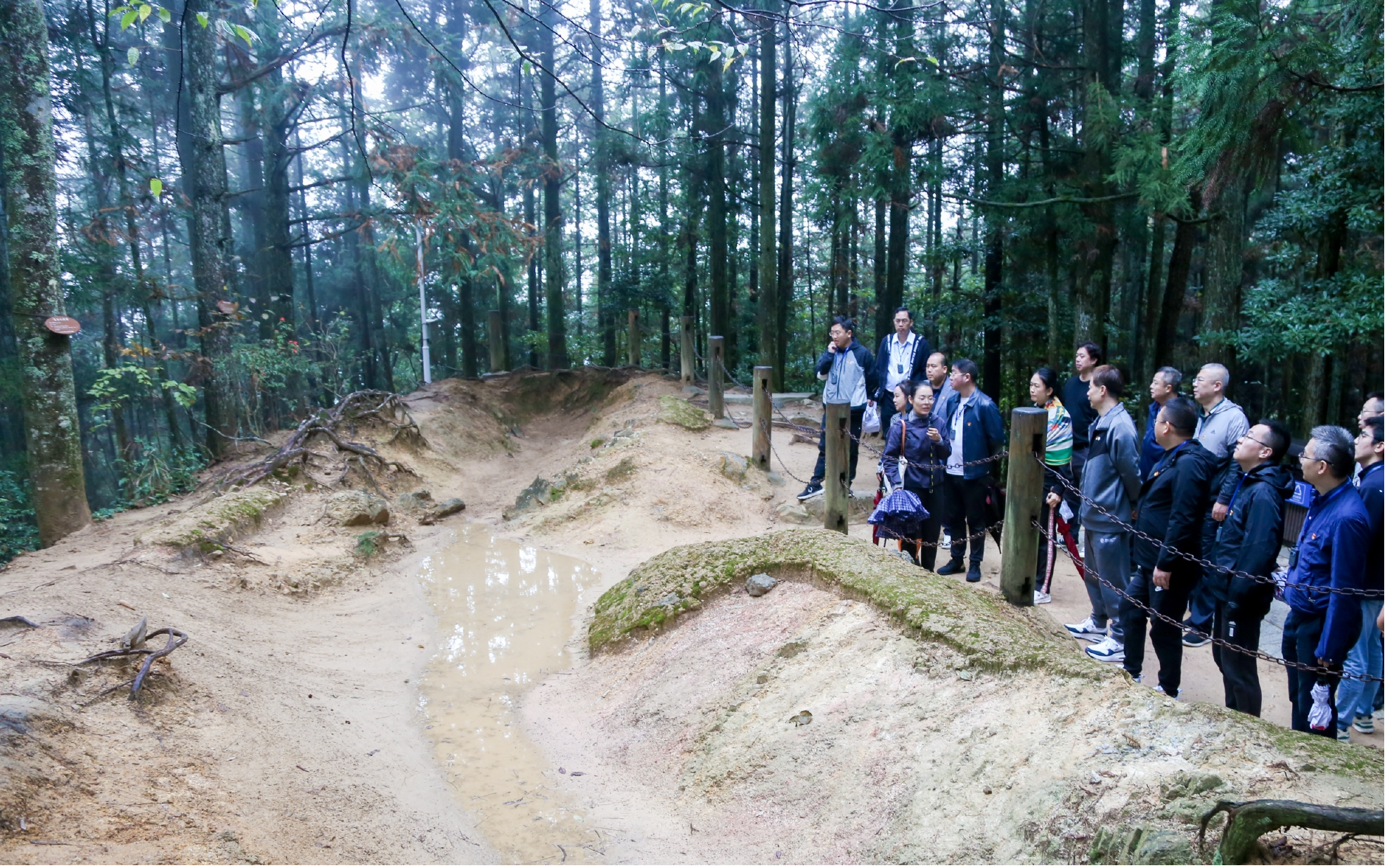 此外,全體黨員同志還來到了黃洋界紀念碑和炮臺處,眺望高聳入云的五指峰,朗誦毛澤東詩詞《西江月?井岡山》。在挑梁小道,黨員同志雖手不提,肩未挑,輕裝上陣,僅僅短暫時間,在崎嶇狹窄的山間小道,早已累得氣喘吁吁,深刻體驗到了革命先輩為信仰與不怕困難、樂觀無畏的堅強革命意志。