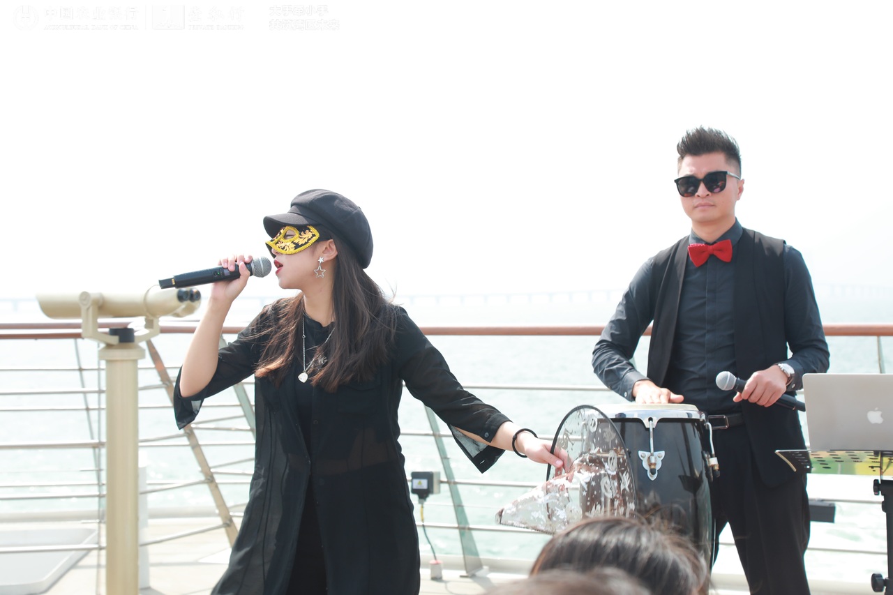 在大灣區(qū)二號(hào)返程途中,船尾響起的音樂聲,吸引游客們互動(dòng)。