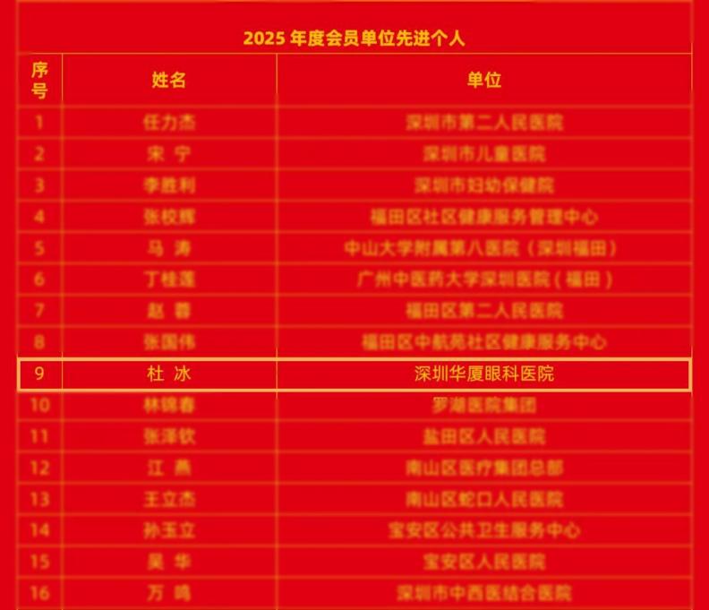 深圳華廈眼科醫(yī)院杜冰獲評市社區(qū)衛(wèi)生協(xié)會“2025年度會員單位先進(jìn)個人”稱號