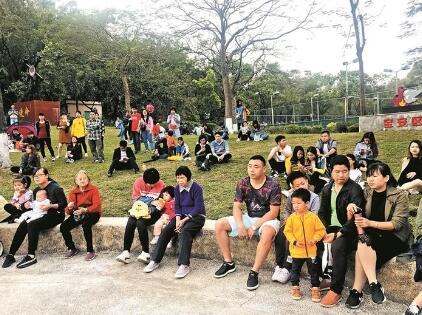 ▲市民在寶安公園觀看街頭藝術表演。