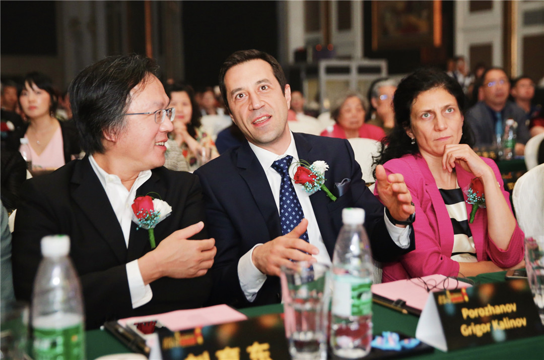 △保加利亞駐中國大使Porozhanov Grigor Kalinov與中俄友好大使、俄羅斯著名影星喜蓮娜為保加利亞DA Architects公司設(shè)計(jì)師頒發(fā)“最佳商業(yè)空間設(shè)計(jì)獎(jiǎng)”