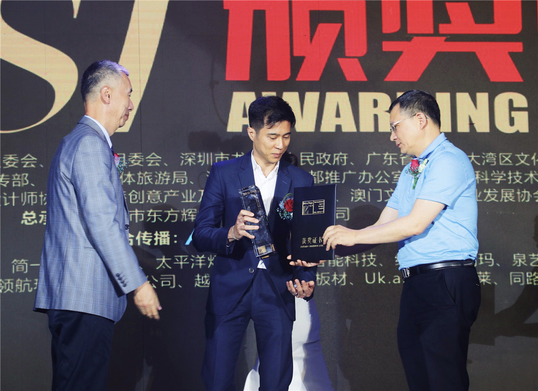 △深圳市室內(nèi)設(shè)計(jì)師協(xié)會(huì)會(huì)長(zhǎng)、HHD假日東方國際設(shè)計(jì)機(jī)構(gòu)創(chuàng)始人洪忠軒、香港大學(xué)建筑學(xué)院教授賈倍思為上海TOWO堂晤設(shè)計(jì)頒發(fā)“最佳展示空間設(shè)計(jì)獎(jiǎng)”
