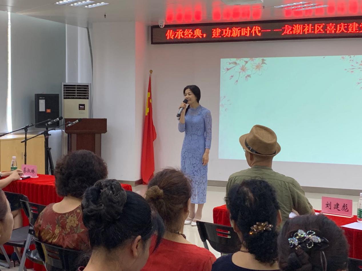 講座開(kāi)始前,龍湖社區(qū)古詩(shī)新韻班的學(xué)員傾情奉上國(guó)學(xué)經(jīng)典新學(xué)堂歌——《游子吟》,為本次活動(dòng)拉開(kāi)了序幕。接著,龍湖社區(qū)的羅黎靜書(shū)記深情致辭,為“新時(shí)代中華優(yōu)秀傳統(tǒng)文化”項(xiàng)目走進(jìn)社區(qū)表示榮幸和歡迎,“人生自有詩(shī)意,詩(shī)意美在四季。今天來(lái)到現(xiàn)場(chǎng)的每一個(gè)人都心中有愛(ài),腹中有詩(shī),對(duì)生命有著詩(shī)一般的向往和追求”,喚醒生命中的詩(shī)意,活動(dòng)的意義也在于此。