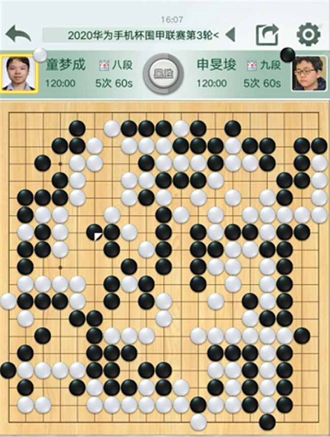 二臺(tái),主將申旻俊執(zhí)白對(duì)陣童夢(mèng)成。局勢(shì)一直接近。白126、132連續(xù)走了小棋,黑開始領(lǐng)先。