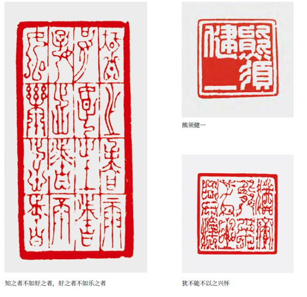 說起自己的代表作,寧老師十分謙虛,但筆者還從他的印屏、印作中,從以往宣傳報道中理出了一些頭緒。比如,剛來深圳,有感于鄧小平同志的功績,刻了一方《總設計師鄧小平》,陳巨來的印味明顯。2013年寶安區(qū)書法協會發(fā)行新年掛歷上印有“蛇年大吉”印章,便出自他手。那是一方金文白文印,整體舒朗開闊,靈動高古,爛漫天成,不失為其代表作。還有,用一方印完整地刻出了268字的《心經》亦是獨一無二的。他為友所刻《真善美》朱文鳥蟲篆,布局疏密自然,光潔妍美,婀娜多姿,韻味無窮。元朱文白文印《熊須健一》,疏密呼應,“一”字處大片留紅,與另三字形成強烈對比,“須”字三撇作美化處理,形成印眼。此印工穩(wěn)爽朗,行刀如筆,耐人尋味。還有應約為著名棋手武宮正樹、徐瑩等所刻鳥蟲篆印均“嵌入”圍棋黑白二子的元素,自然貼切,又妙趣橫生。還有為出版社、書局、書籍插圖以及賽事配刻的印章更是數不勝數。當前,寧老師依然精神飽滿、創(chuàng)作旺盛,相信未來還會不斷有令人驚喜的印品佳作問世。