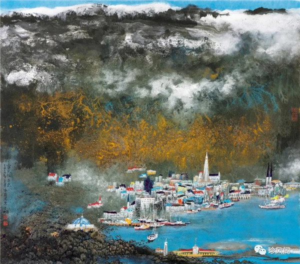 宋玉明從金陵畫派的新傳統(tǒng)跨越到城市表現(xiàn)的積彩拓墨畫法,既體現(xiàn)了現(xiàn)代化城市對(duì)于變革傳統(tǒng)的時(shí)代訴求,也體現(xiàn)了他移居深圳后這座新興城市文化對(duì)于他的深刻影響。畢竟,連續(xù)數(shù)屆的深圳水墨雙年展對(duì)于水墨在跨文化中重要作用與表現(xiàn)方法的突破,都給予他至深的思想開拓。這表明,城市山水畫已不單純是用中國(guó)畫表現(xiàn)城市的命題,而是其中能夠蘊(yùn)含多少城市文化觀念與城市審美的方法,宋玉明對(duì)于城市山水畫的探索,體現(xiàn)的正是這樣一種對(duì)城市現(xiàn)代文化的思想融合性。而不拘謹(jǐn)于城市一磚一石、一街一道、一房一樓的描繪,著眼于發(fā)揮水墨與彩墨表現(xiàn)的自由性,抑或體現(xiàn)了人性、自然與現(xiàn)代城市共同作用的現(xiàn)代生活方式與人文理想。的確,純粹用中國(guó)畫或水墨畫來(lái)探索城市的現(xiàn)代化景觀表現(xiàn),也許只是淺層次的審美需求;而只有當(dāng)把山水畫作為人與自然和諧統(tǒng)一的觀念表達(dá)植入城市現(xiàn)代化的審美訴求時(shí),城市山水畫才能真正凸顯出其深刻的美學(xué)價(jià)值。這正是我們從宋玉明的作品里能夠讀解到的他對(duì)于城市山水畫審美理想的一種勾畫。