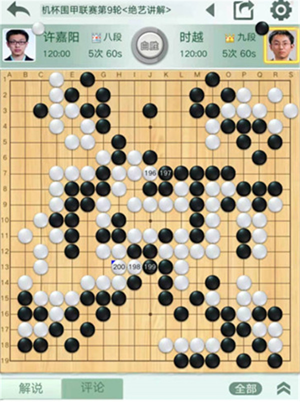 四臺(tái)等級(jí)分排名15的時(shí)越執(zhí)黑對(duì)陣排名14的許嘉陽(yáng)。黑棋開局行棋有些平緩,慢慢等機(jī)會(huì)。但之后白棋發(fā)揮上佳,黑棋沒有明顯機(jī)會(huì)落敗。