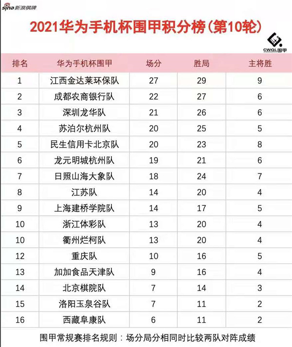 讀特客戶端?深圳新聞網(wǎng)2021年6月12日訊(記者周錦春)華為手機(jī)杯男子圍甲聯(lián)賽第二階最后一輪比賽今日塵埃落定,16圍甲隊(duì)伍可以暫時(shí)偃旗息鼓,安安心心地享受端午節(jié)的快樂時(shí)光了。第十輪深圳龍華隊(duì)對(duì)陣龍?jiān)鞒呛贾蓐?duì),以1:3再次敗退一步,從積分榜第二的位置降至第三,江西隊(duì)金達(dá)萊環(huán)保隊(duì)、成都農(nóng)商銀行隊(duì)分居狀元、榜眼之位。圍甲第三階段比賽預(yù)計(jì)在8月底繼續(xù)在浙江長興進(jìn)行。