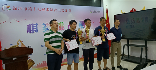 深圳棋院副院長(zhǎng) 張進(jìn) 為二等獎(jiǎng)獲獎(jiǎng)選手頒獎(jiǎng)