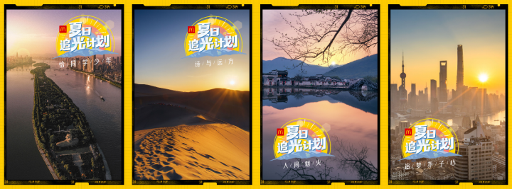7月6日,麥當(dāng)勞“夏日追光計(jì)劃”從西安大雁塔出發(fā),來(lái)到長(zhǎng)沙橘子洲頭,領(lǐng)略“恰同學(xué)少年”的意氣風(fēng)發(fā)。從敦煌、漠河,到青海湖和張掖,一起尋找“詩(shī)與遠(yuǎn)方”??缭角鄭u、杭州、福州、大連、蘇州和平遙,看遍“人間煙火”。在廣州小蠻腰和深圳東門(mén),感受“追夢(mèng)赤子心”。為期28天的追光之旅,暖心浪漫的麥當(dāng)勞為大家搜集不同城市的日出,并用四個(gè)主題串起28地。敬請(qǐng)關(guān)注麥當(dāng)勞嗶哩嗶哩(B站)帳號(hào),鎖定連續(xù)28天的直播,也可以訪問(wèn)麥當(dāng)勞官方網(wǎng)站觀看每天日出的精華視頻。