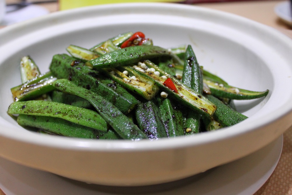 做法:秋葵洗凈汆水后切段備用;鮮魷用姜汁酒飛水后切薄片備用;燒肉切件備用。開鍋下油,爆香拍蒜,放秋葵、燒肉、鮮魷大火翻炒片刻,攢少許米酒,下碗芡(生粉、麻油、生抽、糖、鹽),炒勻上碟即成。