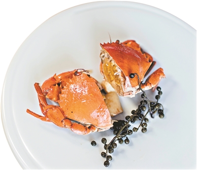 當(dāng)季的食材不止松茸,還有奄仔蟹。挑選大約三兩左右的奄仔蟹,用以花椒焗,跳躍的味道讓奄仔蟹走出清蒸的慣性圈子,甘香里的一絲麻辣,讓舌尖的記憶更為清晰。印象深刻的還有那蒜頭,焗完以后,如同土豆一般地粉軟。