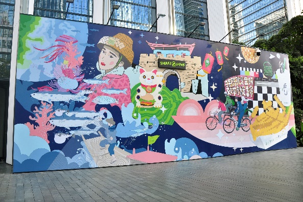 Shake Shack一直熱衷于將品牌文化、潮流趨勢與當(dāng)?shù)厣罘绞较嗳诤希瑸槠放茙砣蚂`感。作為深圳首店正式開業(yè)前的預(yù)告,Shake Shack攜手深圳先鋒藝術(shù)家李昱昱 ? (Y oyo L ee )在深圳萬象天地特別推出了別具匠心且富有致敬意義的巨幅創(chuàng)意圍擋。