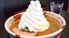 日本神戶市一家餐廳開發(fā)了一款“前所未有的拉面”,以紅豆沙為湯,面上澆一層奶油,集咸、辣、甜味為一體,定于2018年初限量供應(yīng)。