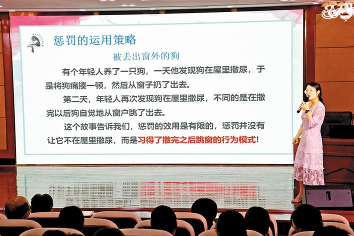 講座中,齊玲老師介紹三體腦精神,然后圍繞“馬斯洛需求層次理論”五個板塊結(jié)合實例進行具體講解:一、生理需求;二、安全需要,根據(jù)羅森塔爾效應(yīng),指出教師應(yīng)以積極發(fā)展的眼光看待孩子;三、社交需要;四、尊重的需要,從內(nèi)部認可的鼓勵到外部認可的鼓勵會導(dǎo)致“德西效應(yīng)”;五、自我實現(xiàn)需求。期間,她通過各項案例,以常見的心理問題為例,層層推進,逐步告訴老師們面對此類問題的解決辦法,令老師們受益匪淺。