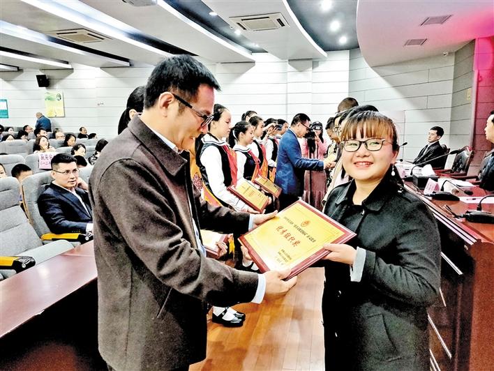 區(qū)民政局負責人為獲獎單位頒獎。