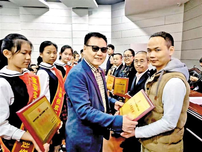區(qū)慈善會負責人為獲獎單位頒獎。