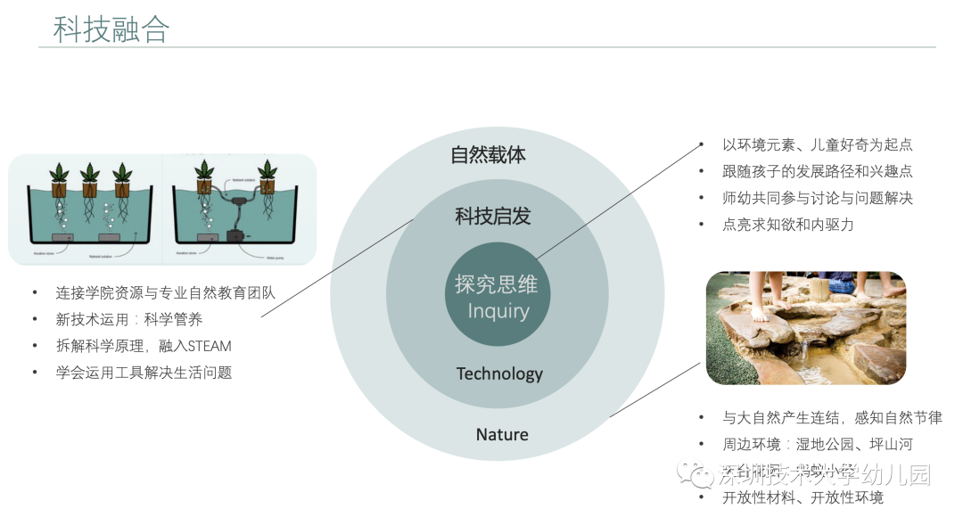 園舍內(nèi),聯(lián)動(dòng)大學(xué)學(xué)院資源和專(zhuān)業(yè)自然教育團(tuán)隊(duì)打造自然教育場(chǎng)所,使得科技與自然在幼兒環(huán)境中有機(jī)結(jié)合。自然在前,技術(shù)運(yùn)用在后,孩子將用探究的眼光發(fā)現(xiàn)如何運(yùn)用技術(shù)解決生活問(wèn)題。
