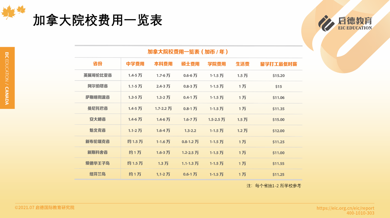 加拿大統(tǒng)計(jì)局?jǐn)?shù)據(jù)顯示,2019-2020學(xué)年加拿大國(guó)際留學(xué)生,本科平均學(xué)費(fèi)為29714加幣 /年 (同比上學(xué)年增漲7.6% ),約合16萬人民幣/年;碩士平均學(xué)費(fèi)水平為17744加幣 /年(同比上學(xué)年增漲4% ),約合10萬人民幣/年;生活費(fèi)1萬 -1.5萬加幣 /年,約合5.2萬-7.9萬人民幣/年,總留學(xué)費(fèi)用在美、英、澳、加四大熱門留學(xué)目的國(guó)中最低。此外,加拿大公立中學(xué)學(xué)費(fèi)、生活費(fèi)用共約14萬人民幣 /年,國(guó)際私立中學(xué)共約20萬人民幣 /年,私立本地精英中學(xué)共約20萬-28萬人民幣/年,私立貴族中學(xué)共約26萬 -40萬人民幣 /年。