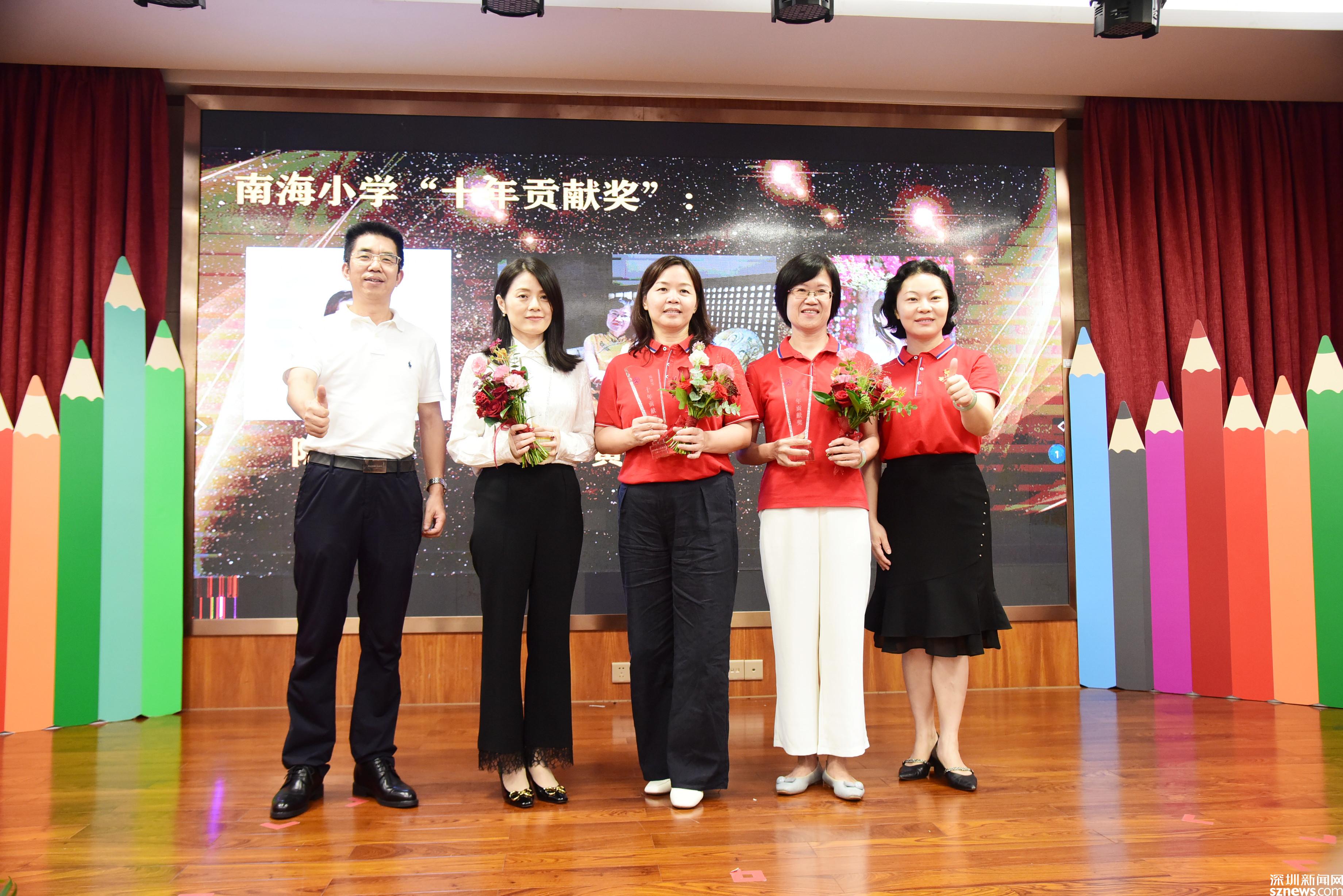 大會頒發(fā)了南海小學(xué)“十年貢獻獎”、南海小學(xué)特別貢獻獎、教學(xué)質(zhì)量獎,也對南山區(qū)優(yōu)秀教師、南山區(qū)優(yōu)秀班主任、入圍南山區(qū)2021“年度教師”決賽教師等進行了表彰。入圍南山區(qū)2021“年度教師”決賽的李艷老師、青年教師代表方子玉老師上臺分享了她們的教育教學(xué)經(jīng)驗與成長心路歷程,李艷老師說:“我不僅僅是一名英語教師,更是孩子們的夢想合伙人!”方子玉老師說:“南山就是一塊永遠充滿學(xué)習(xí)熱情的沃土,南海更是一所不斷為青年教師搭建學(xué)習(xí)平臺的寶藏學(xué)校?!?/p>