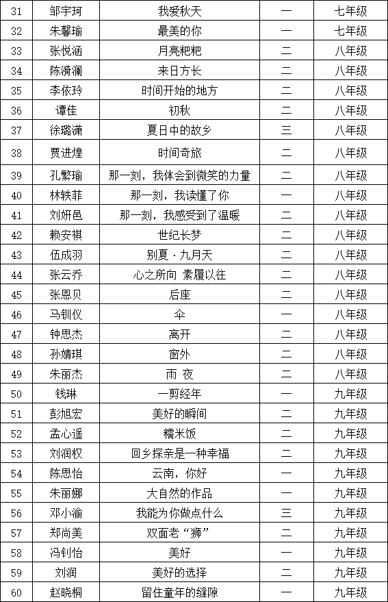 自2021年1月,活動征稿啟動以來,獲得了深圳市廣大中小學(xué)生、教師、文學(xué)愛好者的熱烈響應(yīng)積極參與,吸引了深圳百余所學(xué)校的上萬人關(guān)注報名?,F(xiàn)公布深圳市龍華區(qū)教科院附屬學(xué)校晉級復(fù)賽名單如下: