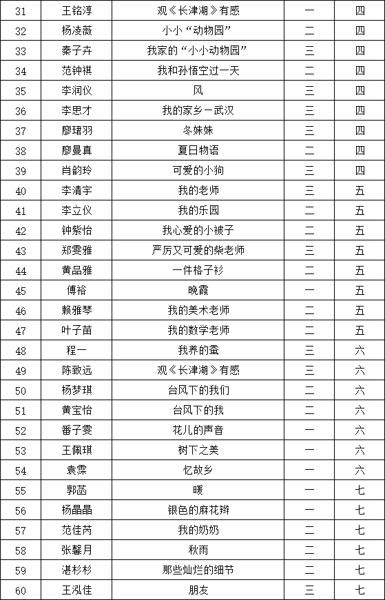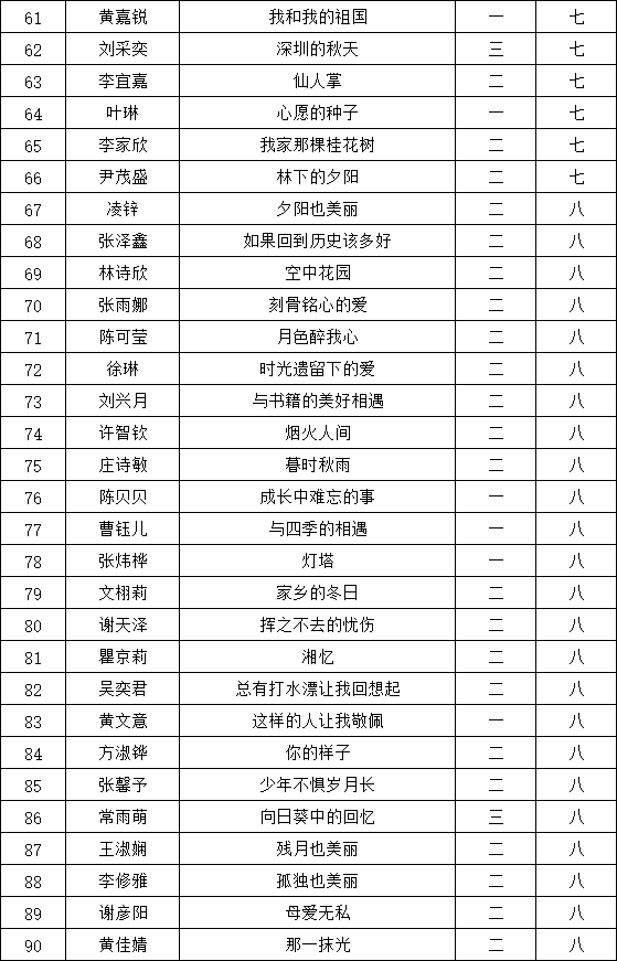 自2021年1月,活動(dòng)征稿啟動(dòng)以來(lái),獲得了深圳市廣大中小學(xué)生、教師、文學(xué)愛(ài)好者的熱烈響應(yīng)積極參與,吸引了深圳百余所學(xué)校的上萬(wàn)人關(guān)注報(bào)名?,F(xiàn)公布南二外(集團(tuán))赤灣學(xué)校晉級(jí)復(fù)賽名單如下: